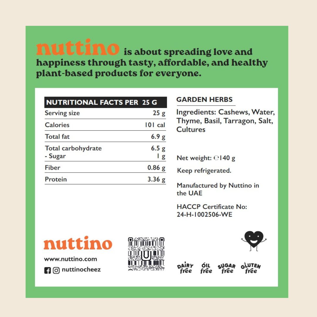 Hurry, only available for a limited time! Introducing our exciting new flavor a Limited Edition – Garden Herbs Cheese—a delightfully fresh and flavorful dairy-free cheese made from the finest cashews and a luscious, fragrant blend of thyme, basil, and tarragon. This smooth, creamy gourmet cheese is perfect for those who crave a wholesome, natural taste without any additives. Our Garden Herbs Cashew Cheese is Free from oil, sugar, gluten, yeast and completely additive-free, Taste the difference of real ingredients crafted with love.